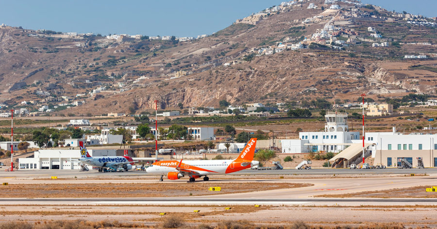 Στις αερομεταφορές και σύμφωνα με στοιχεία του 2024 της Fraport Greece, το αεροδρόμιο της Σαντορίνης διακίνησε 2.877.122 επιβάτες έναντι 2.775.805 επιβατών το 2023, σημειώνοντας άνοδο 3,7%.